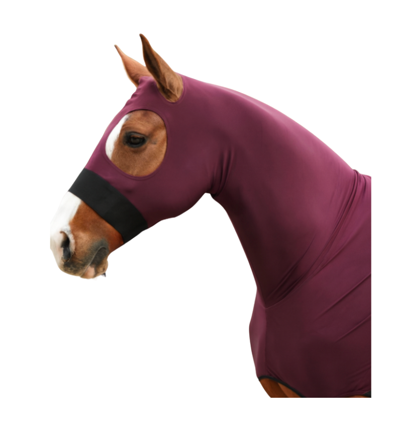 Lycra skinny hood/vest secures over the wither and under the girth for the ultimate protection. The zipper makes for easy dressing and a firm fit.